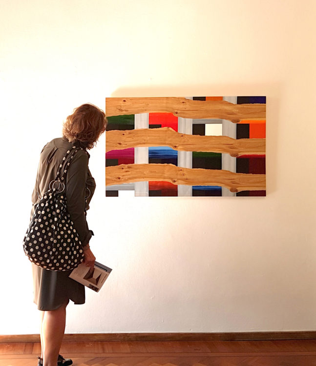 InhouT. Mijn schilderijen ontstaan uit de meerwaarde van hout. De tijd heeft een beeld achtergelaten in dit duurzame materiaal. In het schilderij is er een wisselwerking tussen het beeld van de houten drager en het geschilderde beeld.