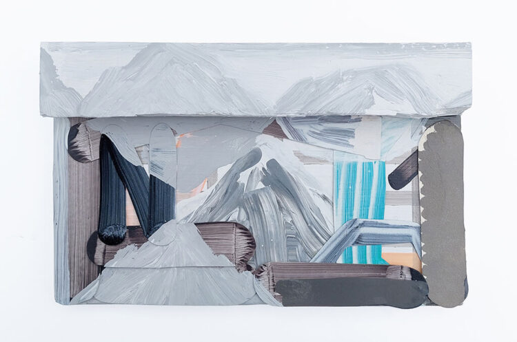 In gelaagde schilderijen gaan abstracte vormen een relatie met elkaar aan. Speels, open en gesloten, contrasterend en kwetsbaar. Uitgeknipte vormen en stukken hout op geschilderde ondergronden geplakt. Nieuw is het gebruik van figuratieve elementen.