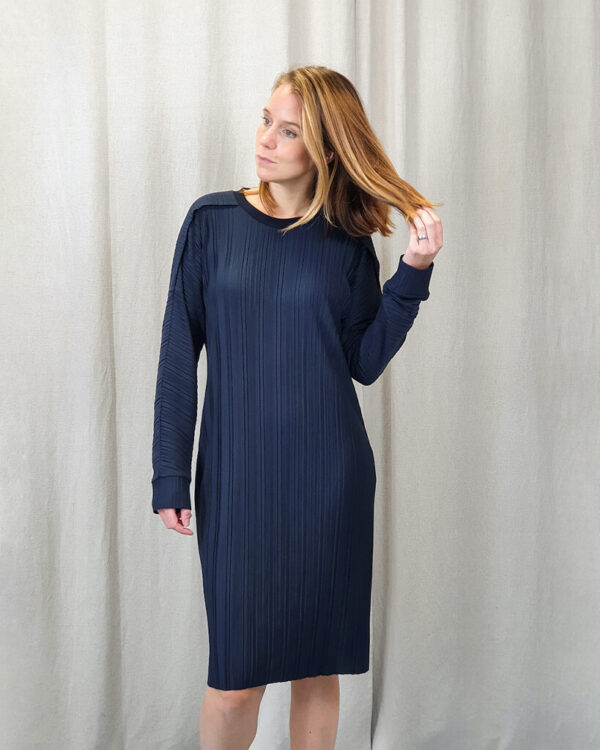 donkerblauwe plisse jurk