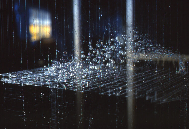 Het beeld groeit als een organisme. Doorschijnende variatie van licht geeft totaal andere impressies. Het weefsel is lichtgevoelig en de vorm wordt zichtbaar. Het immateriële volume reflecteert de kleurtemperatuur van licht naarmate de tijd verstrijkt.