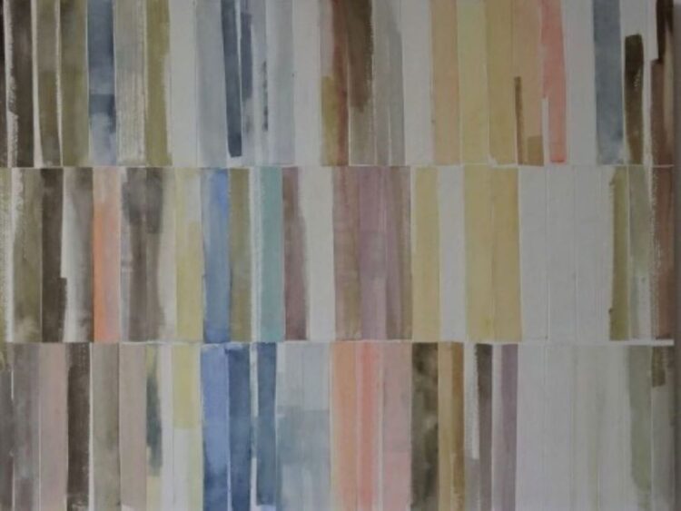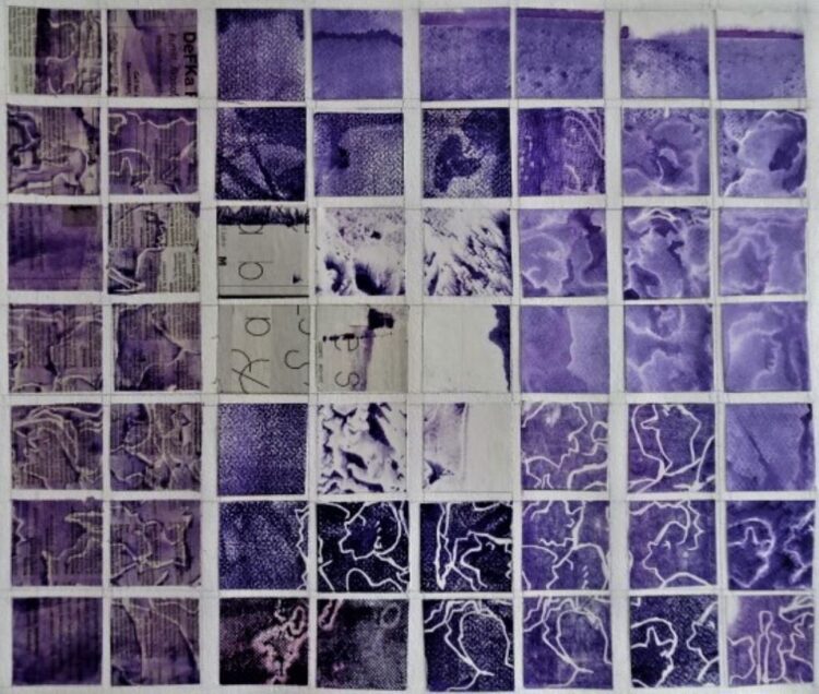 In mijn werk zijn fragmenten verwerkt, die ritmisch over het vlak verdeeld zijn.