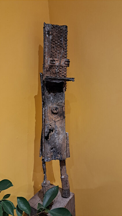 Mijn beelden in brons tonen de schoonheid van het vergankelijke, het verval. Mijn schilderijen zijn mijn reacties op het nieuws, geschilderd met inkten op oude kranten.