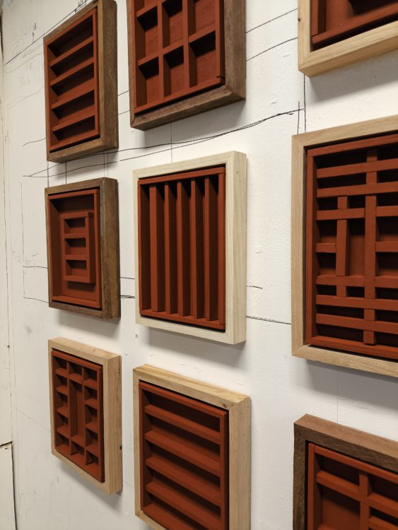 25,5 x 30 cm / wit ceder, hardhout en falu rood / €310