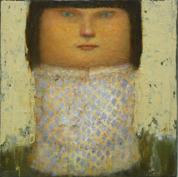 De schilderijen van José van Kleef, olieverf op paneel of doek meestal klein formaat, verbeelden mens, dier en natuur.