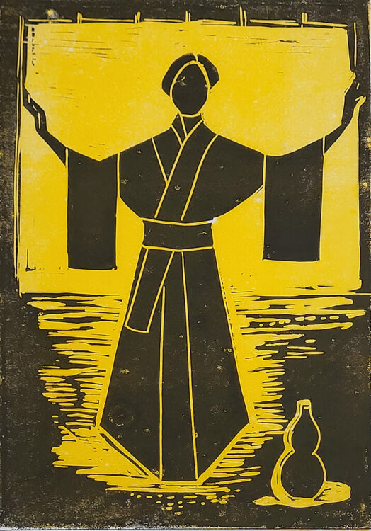 21 x 30 cm / linoleumsnede op handgeschept japans papier / €150