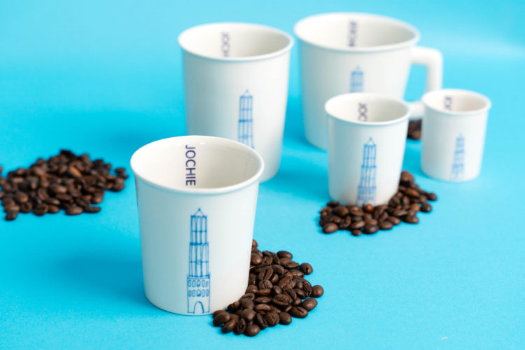 7 x 7 x 10 cm / Porselein kopje gedecoreerd met illustratie van de Domtoren en een Utrechts woordje: Jochie / €2250