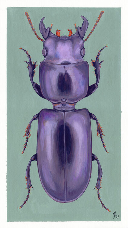 Ik maak schilderijen, tekeningen en foto’s van het kleine in de natuur: insecten, mossen, paddenstoelen en bermplanten. Door met veel aandacht en nauwkeurigheid te werken probeer ik een onopgemerkte wereld aan het licht te brengen.