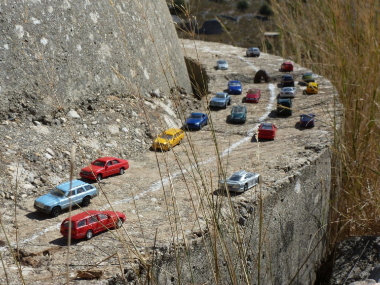 40 x 4 x 300 cm / Mercedes speelgoed auto's, krijt / €1111