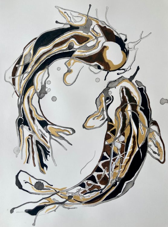 Drijvende inkt is het medium in mijn werk. Suminagashi, een marmertechniek, de inspiratiebron. Het werk belichaamt schoonheid van imperfectie en de veranderlijke natuur van het leven. Papier, glas, textiel en servies zijn drager van de afbeelding.