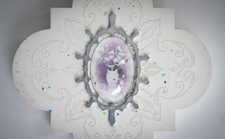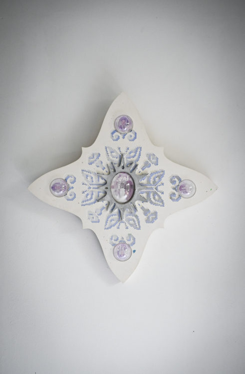 50 x 50 cm / Gips, metaal, hout en acrylaat / €1100