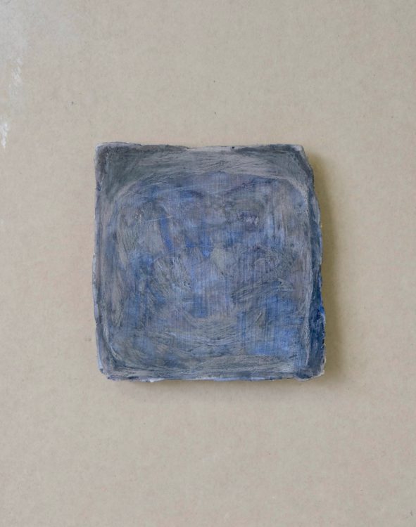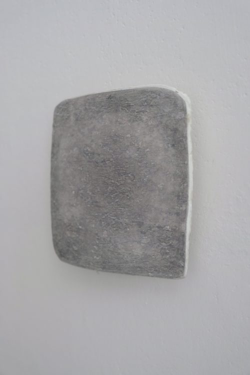 11 x 11 cm / acrylic resin, wire mesh, parchment paper, pigment, stone dust, pencil / €260