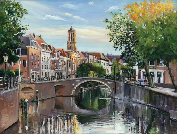 Ik maak schilderijen van Utrecht. Wandelend langs de singels en grachten vind ik inspiratie. Het spel van licht en de weerspiegeling van de grachten met de Domtoren zijn populair. Mijn werk is vrolijk, kleurrijk en geven de stad op zijn mooist weer