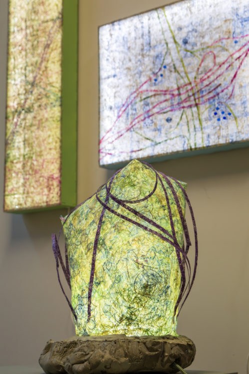 70 x 25 cm / Bioplastic-waste-yarn materiaal, hout, ledsnoer / €3500