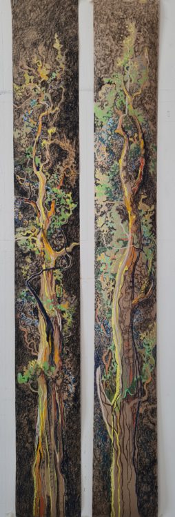 Ik teken en schilder bomen en planten. Ik werk veel op locatie, buiten, zoals in Amelisweerd bij Utrecht, waar ik op groot formaat bomen teken en schilder. Ik maak vaak series werken van eenzelfde boom of plant.